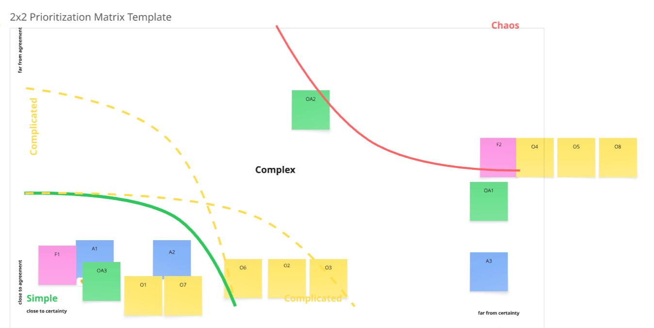 The Agreement & Certainty Matrix (ACM) was used to move beyond simple voting. The ACM asks two questions about each proposed action: how much do stakeholders agree on the problem and the direction of the solution, and how predictable is it that a chosen intervention will succeed in our context? Crossing these two dimensions produces four domains — Simple, Complicated, Complex, and Chaos — each suggesting a different style of action.